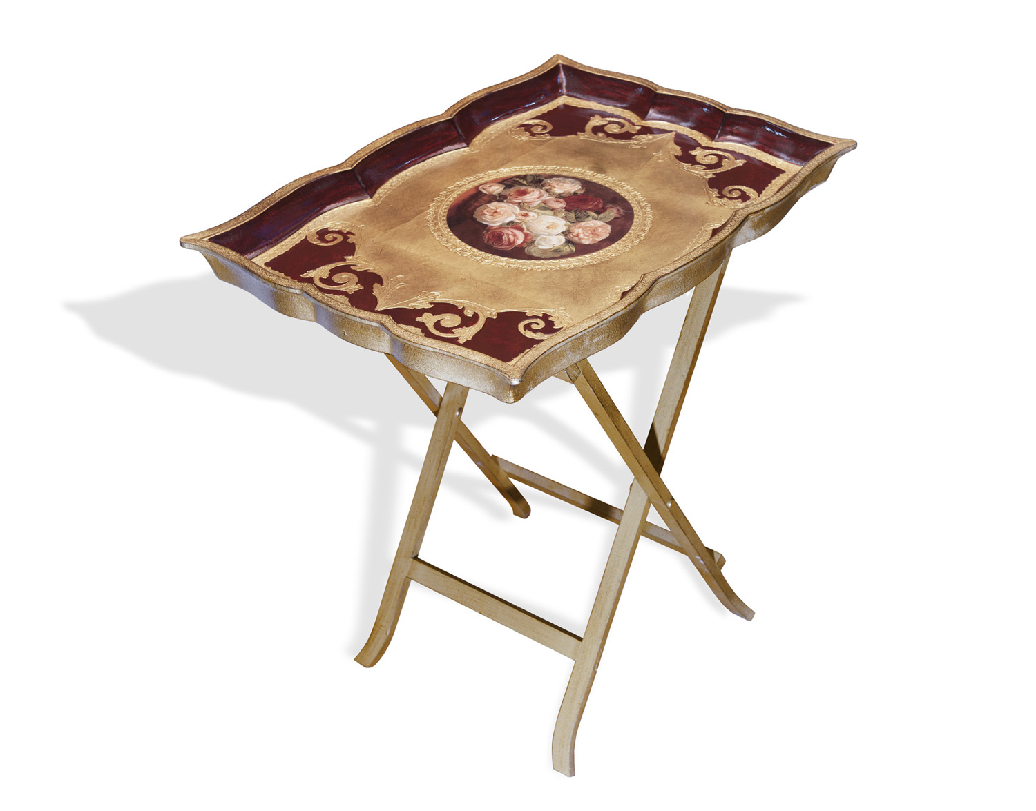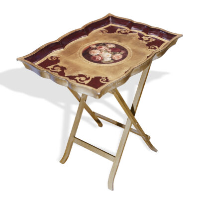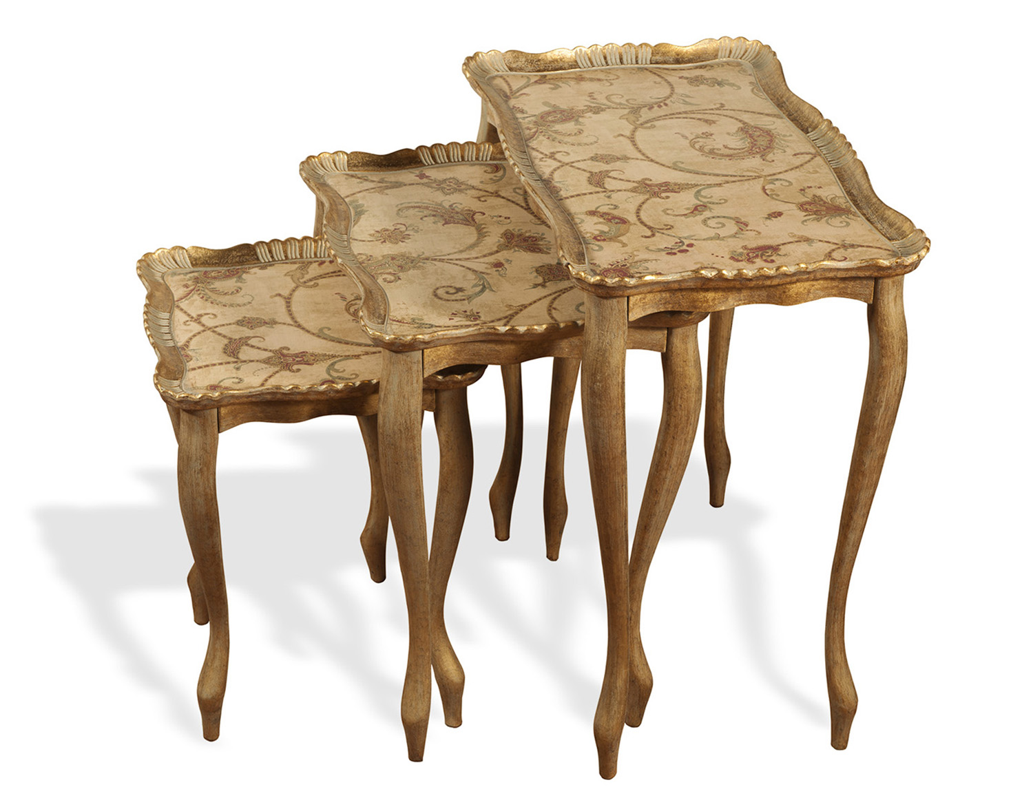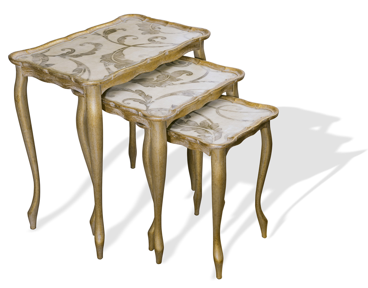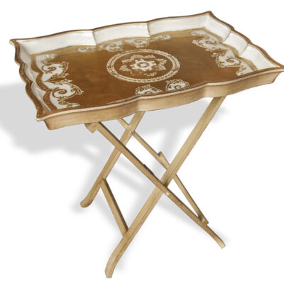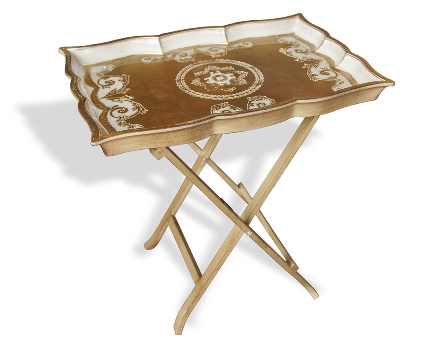 Eleganti tavolini da salotto in legno decorato secondo le antiche tecniche artigianali del ‘300 fiorentino.